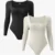Women's Seamless Square Neck Ribbed Long Sleeve Bodysuit Tights Breathable Body Shaper with Tummy Control Shapewear